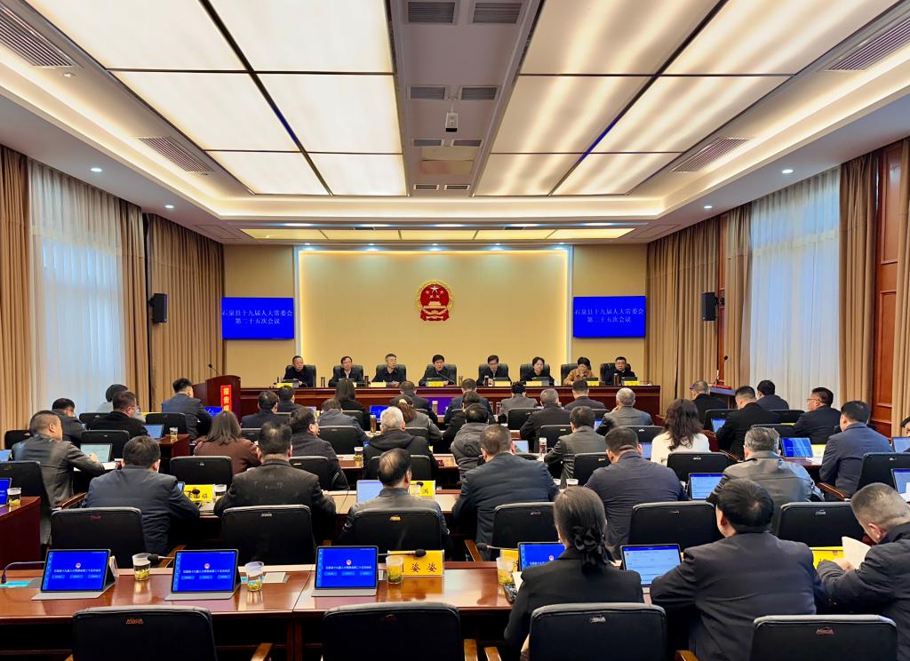 会议组织学习了党的二十届四中全会精神和《习近平法治文选》第一卷部分内容;听取和审议了县政府关于2025年度县本级财政预算调整方案(草案)的报告,批准了2025年县本级财政预算调整方案;听取了县政府关于2024年度县级财政预算执行及其他财政收支审计查出问题整改情况的报告、关于执行《县人大常委会关于促进全县民营经济高质量发展的决议》情况的报告、关于进一步深化农村改革扎实推进乡村全面振兴工作情况的专项报告、关于生态环境保护工作情况的专项报告,以及县人大常委会法制工委关于2025年规范性文件备案审查工作情况的专项报告;会议听取了5名市人大代表述职报告并进行了评议,审议了个别县十九届人大代表辞职事宜,表决通过了有关人事议案并举行了宪法宣誓仪式。